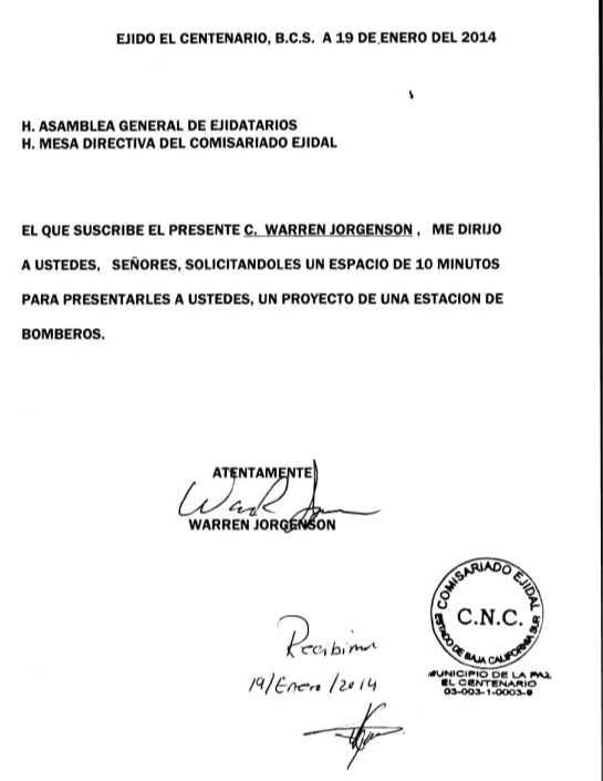 June 7 2013 when we made a presentation to the esteemed Ejido of El Centenario about the creation of our own fire department.