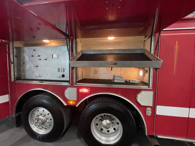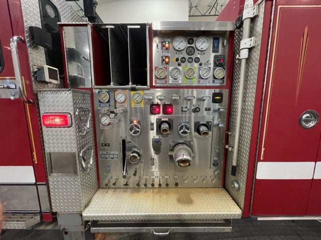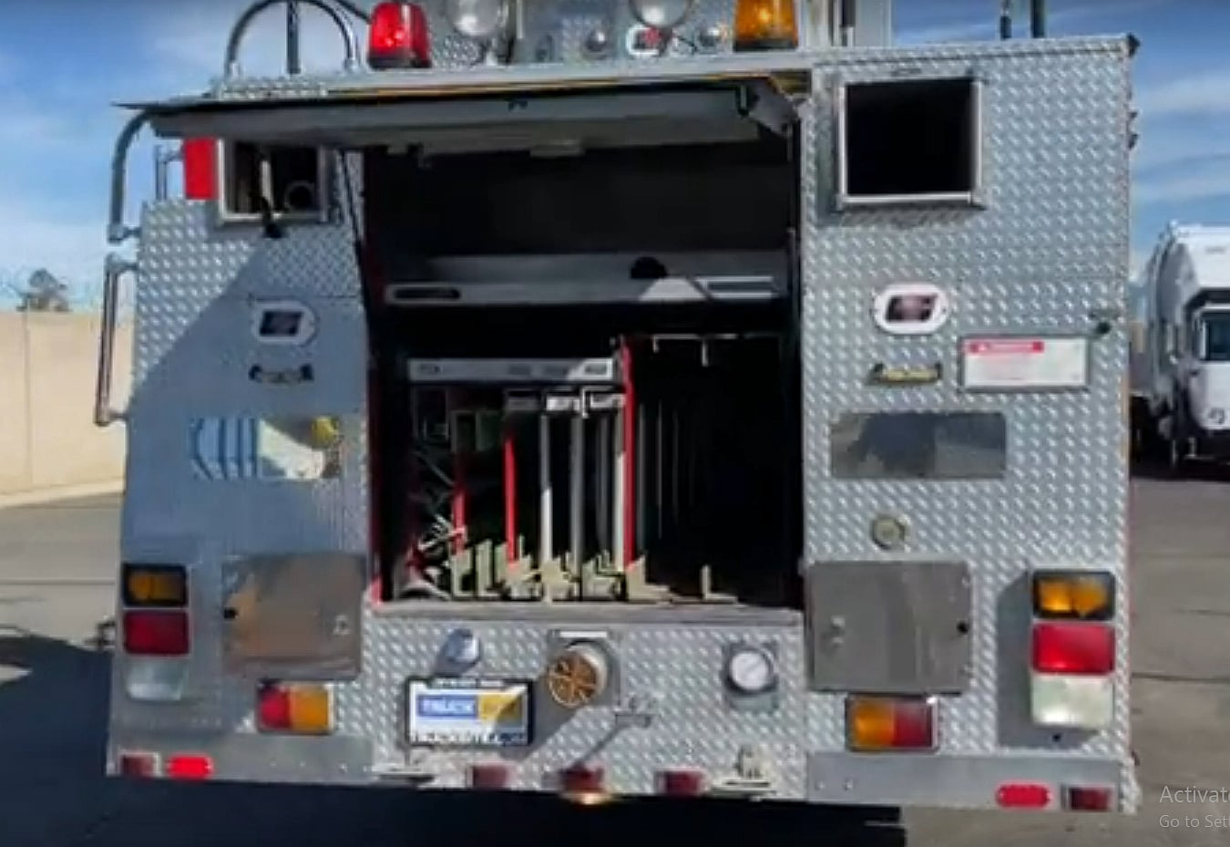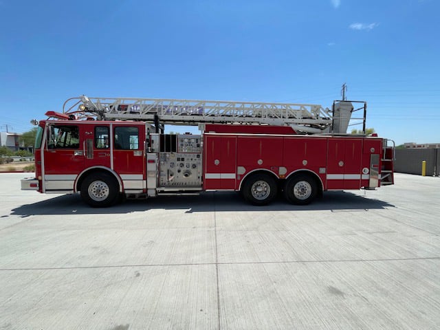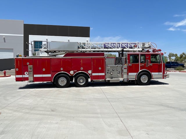 1998 75 Foot (23 Meter) Aerial Quint 1500 GPM Two Stage Pump, 500 Gallons Onboard Water.